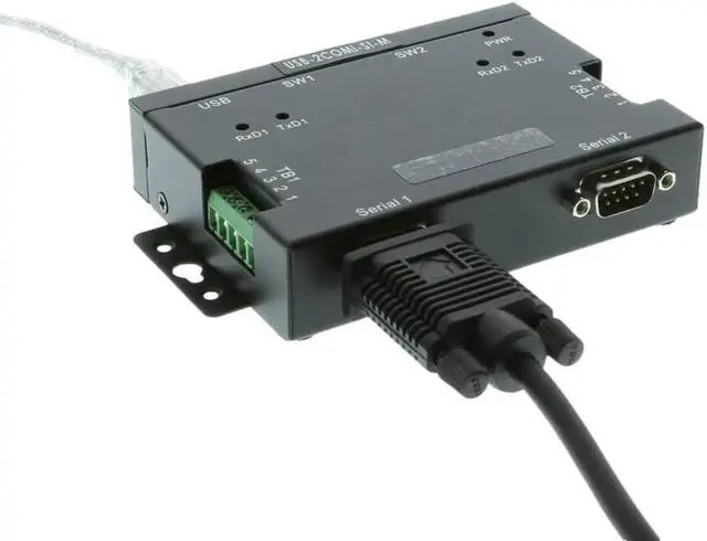 Two DB9 male connectors & two 6-pin terminal block connectors for optimal flexibility of serial connection