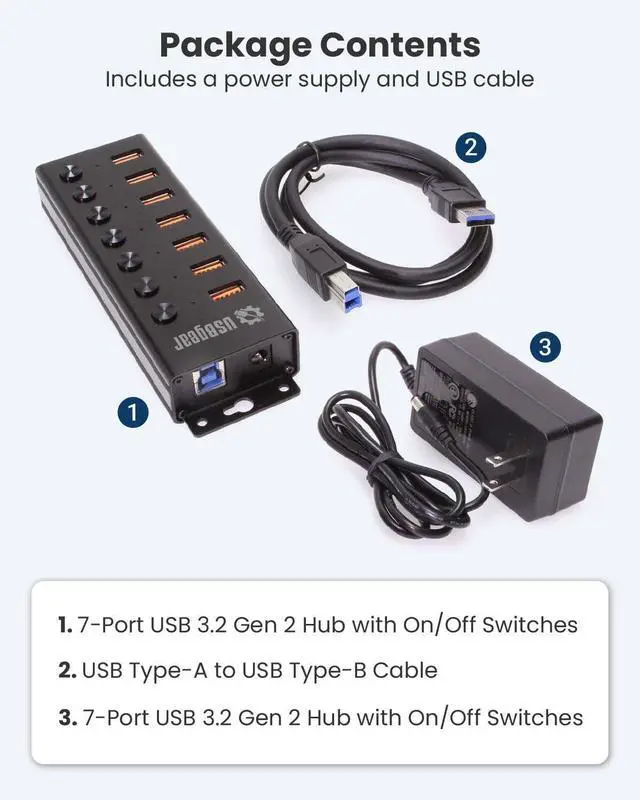 [ Expand Your Setup ] : Easily add 7 USB 3.2 Gen 2 ports with the included Type-A to Type-B cable for streamlined connectivity. Perfect for enhancing your workspace or home office with more USB connections.