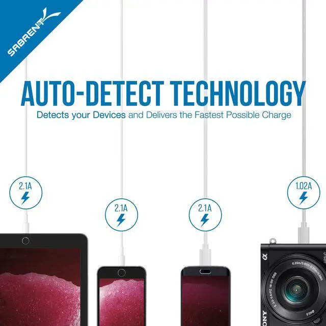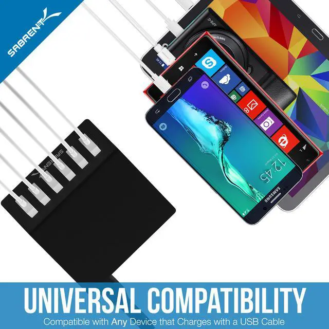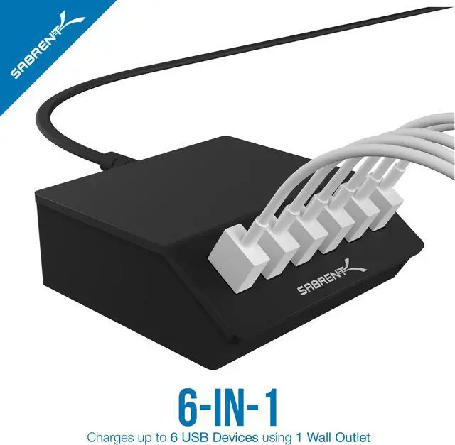 Charge up to 6 USB devices simultaneously from one wall outlet. Simply connect any USB mobile device, such as an iPad, iPhone, iPod, Tablet PC, Smartphone, a Wireless Hotspot etc. and quickly charge all your devices from one place. The Sabrent USB Charger is durable and lightweight and works great at home or at the office. This is a must-have travel companion to charge all your power-hungry devices.