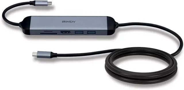 The DST-Micro 140 is a compact and versatile micro docking station designed to be adaptable for use in different environments. Part of Lindys expert docking station range, this product is ideal for those who travel with their tech and often find themselves in environments not built for laptop or desktop use. Housed in a robust aluminium body, this micro docking station is built to provide adaptability on the go. The DST-Micro 140 unlocks connectivity for your device with SuperSpeed USB, microSD and SD Card Slots and a 4k capable HDMI port. Pair this functionality with pass-through charging of up to 60W and the 1.4m power delivery cable and you are left with an incredibly adaptable and capable docking station. Multifunctional. The DST-Micro 140 unlocks connectivity for your device with SuperSpeed USB, (Micro-) SD Card Slots and a 4k capable HDMI port. Pass-through Charging This multifunctional device with pass-through charging of up to 60W and the 1.4m power delivery cable provides you with an incredibly adaptable and capable docking station. Plug-and-Play This micro docking station does not require any driver installation. This allows for seamless large-scale implementation and a hassle-free experience.