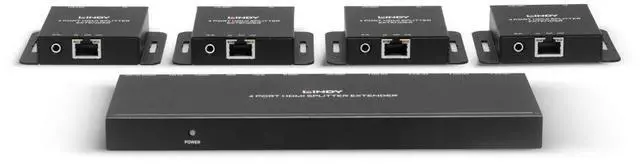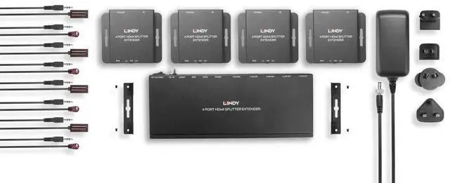 The Lindy 70m Cat.6 4 Port HDMI & IR Splitter Extender is a versatile solution for extending and distributing HDMI signals up to 70m to four displays using low cost Cat.6 UUTP cable (not included); supports IR signals (20-60kHz) for added convenience