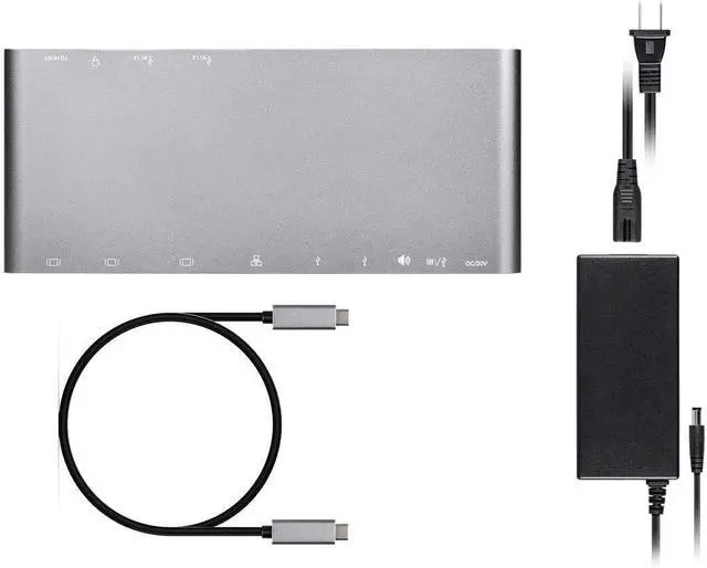 Description The Monoprice USBC Dual Monitor Docking Station offers an integrated solution for power, data, Ethernet, audio, and video for USBC equipped PCs and laptops. It features HDMI, DisplayPort, VGA video outputs, two of which can be used at the same time when connected to a Windows PC or laptop. It supports MultiStream Transport (MST) and up to 100 watts of Power Delivery (PD) for charging USBC equipped laptops, smartphones, and tablets. Four USB 3.0 TypeA ports allow you to keep all of your devices charged and sync'd, while the Gigabit Ethernet port keeps you connected.