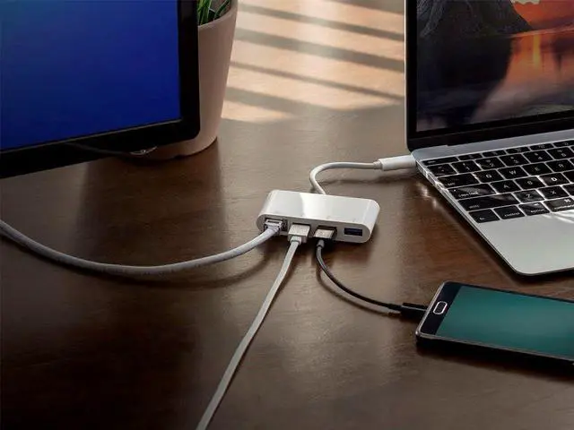 3-Port USB Hub: Adds three USB 3.0 Type-A ports, each capable of delivering data speeds up to 5Gbps, for connecting high speed external peripherals and charging mobile devices.