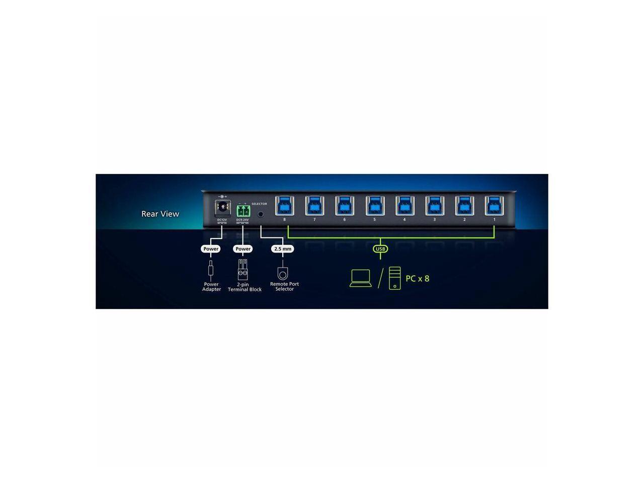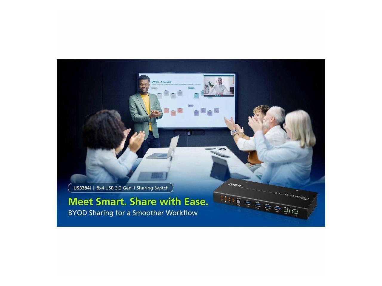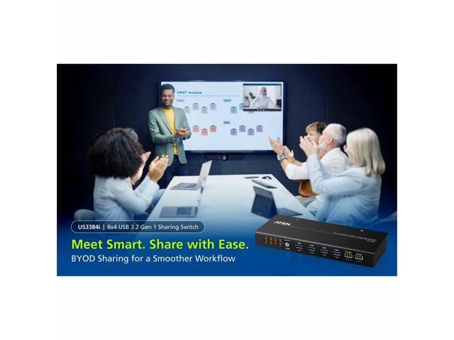 ATEN 8 x 4 USB 3.2 Gen 1 Sharing Switch - 8 Computer(s) - 12 x USB - Wall Mountable