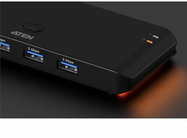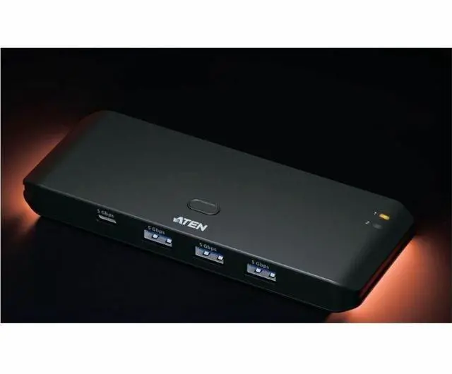 Share 4 Peripherals (USB-A + USB-C) between 2 PCs | Switch Smart Among Four Peripherals. Clutter-Free ControlThe US4324 is a 2-Port USB 3.2 Gen 1 Sharing Switch designed to accommodate the mix of USB-A and USB-C devices required for modern workspaces. Powered by InstaSync™, you can easily switch control of up to four peripherals between two computers in an instant, ensuring dual-computer workflows remain responsive, efficient, and easy to manage while maintaining a space-efficient desktop. Sleek | Compact | Portable | Accent LightStay in Sync with a Stylish GlowShare All Devices with One-Button Switch | Flexible Bus-Powered DesignThe switch automatically powers on when connected to a computer.