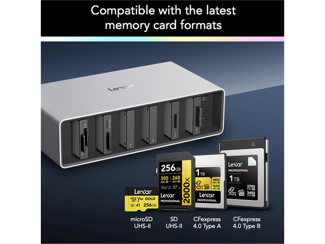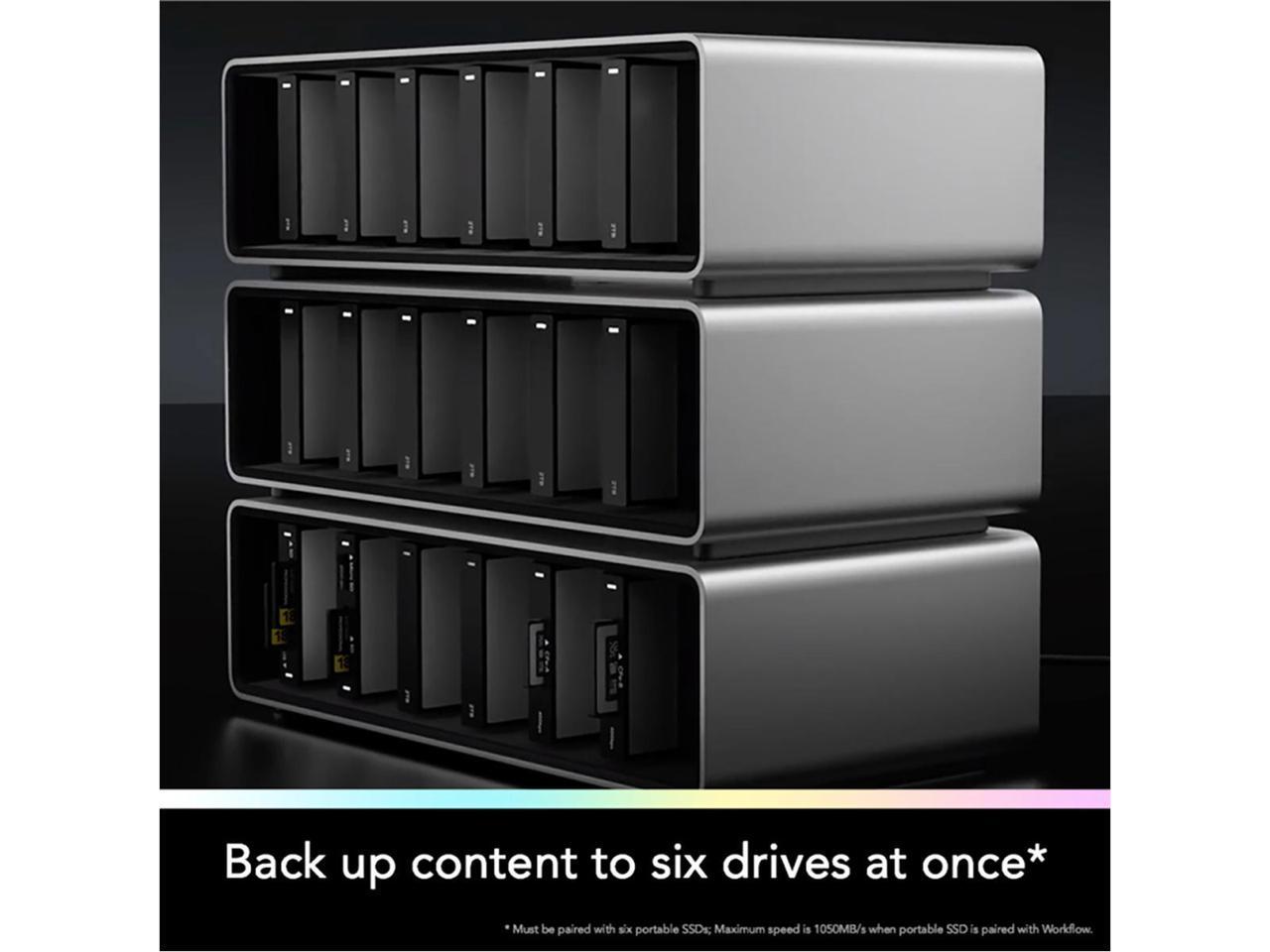 - Supports the latest Workflow Portable SSD, CFexpress Type B 4.0, CFexpress Type A 4.0, and UHS-II SD and microSD cards