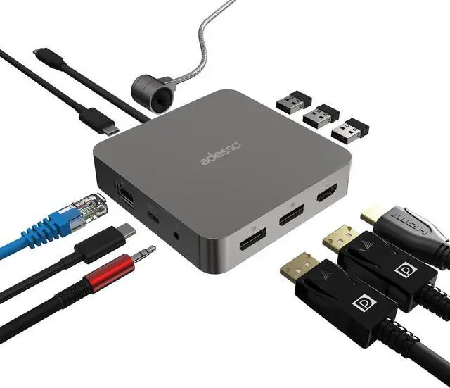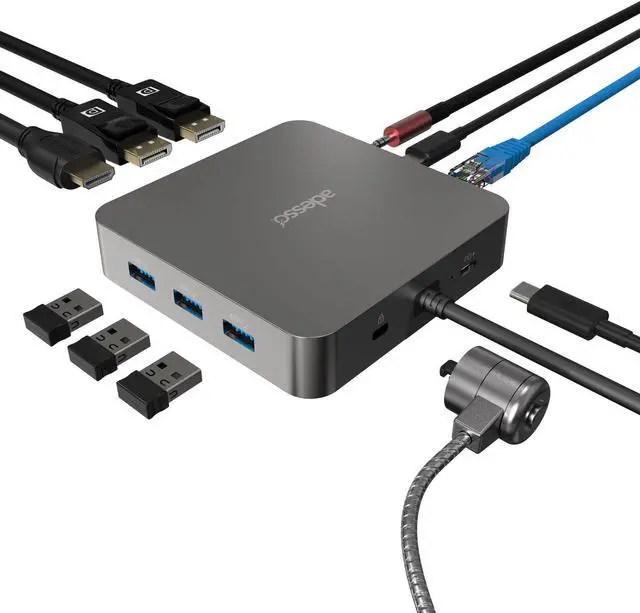 11-in-1 Versatile Connectivity Expand your devices connectivity with 3 USB 3.2 ports 1 USB C 3.2 port 1 PD 100W charging port 2 DisplayPort outputs 1 HDMI 4K port 1 RJ45 Ethernet 1 3.5mm audio jack and 1 peripheral lock port
