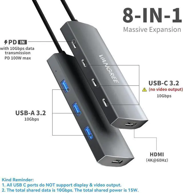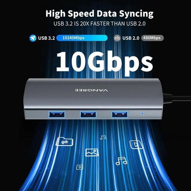 USB C DATA TRANSFER: This USB C Hub can synchronize data through 3 USB C data transfer ports while sharing 10Gbps data bandwidth which can efficiently transfer and backup data for your external devices.???? We recommend connecting 1-2 external USB hard drives or SSDs at a single time.
