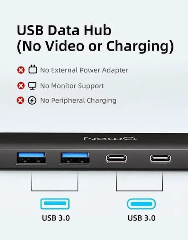 4 Real USB 3.0A ll 4 ports of this usb hub are USB 3.0 and can be used simultaneously. 5Gbps transfer speed can meet most users' needs. Equivalent to 4 USB 3.0 cables absolutely a great usb splitter for laptop. USB-A and USB-CConsidering that usb c port is more popular this usb to usb c hub will be more practical 2 USB C 3.0 ports for more device compatibility and no need for additional usb a to usb c adapterr. Please NotePD charging and monitor is not supported. Portable DesignThis mini usb adapter takes up almost no space plug and play and no drivers required there is no better computer accessories than this.