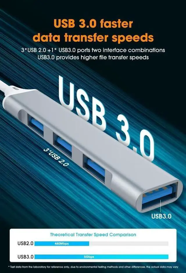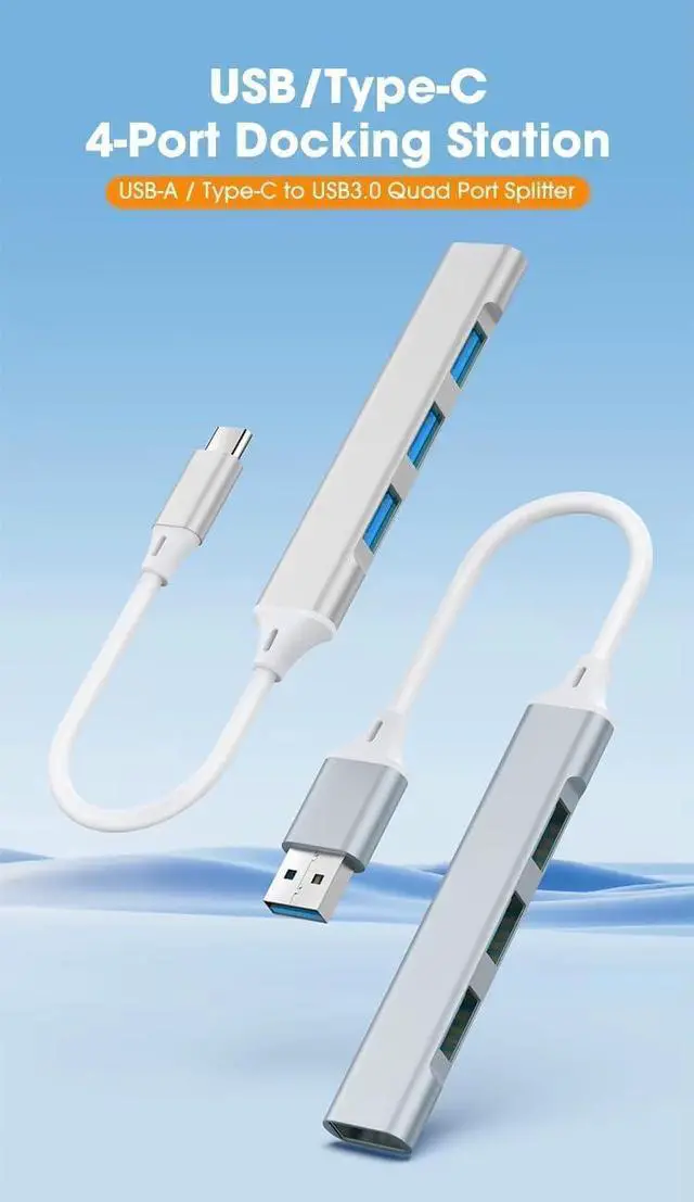 One USB 3.0 port supports up to 5Gbps for faster file transfers and three USB 2.0 ports handle everyday peripherals and standard USB devices. Slim & Travel-Friendly Design Designed for portability this USB-C hub features an ultra-slim profile that fits easily into your laptop bag backpack or pocket. Whether you're commuting traveling or working remotely this compact USB hub adds essential expansion without adding bulk or clutter to your setup. Universal Compatibility Works flawlessly with all USB-C devices including MacBook Pro/Air iPad Pro Chromebooks and Windows laptops. Plug-and-play support means no drivers are neededjust connect and go.