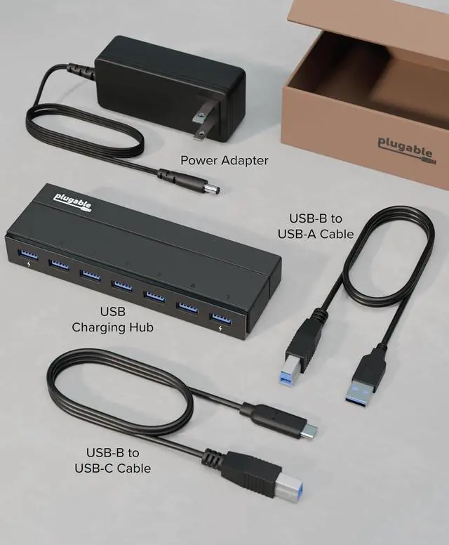 Expanded Connectivity & Power: This 7-port USB 3.0 hub adds seven USB-A ports to your setup with true plug-and-play support. Now includes a USB-B to USB-C host cable so you can connect directly to modern USB-C computers. Ports 1 and 7 provide up to 1.5A charging power for supported devices plus hot-swap support and USB over-current protection. Includes a 36W UL-certified AC adapter (100-240V) for stable powered performance.