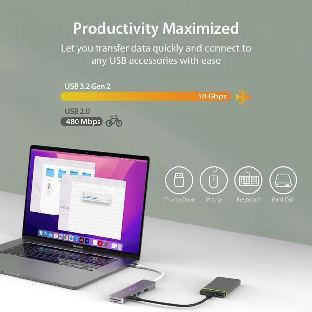 • Lightning-Fast Data Transfer: With USB 3.2 Gen2 support, you can transfer files quickly and efficiently, taking advantage of speeds up to 10Gbps. Connect USB peripherals with ease and experience seamless data transfer.