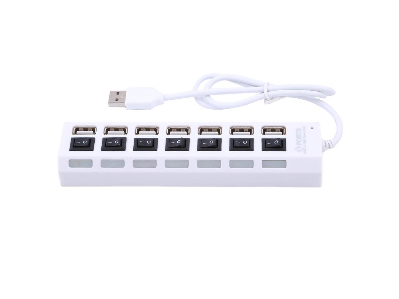 High Speed 480Mbps 7 Port USB 2.0 Hub w/ Individual Power Switches and LEDs,USB Splitter Adapter Port For Laptop PC Computer Peripherals Accessories