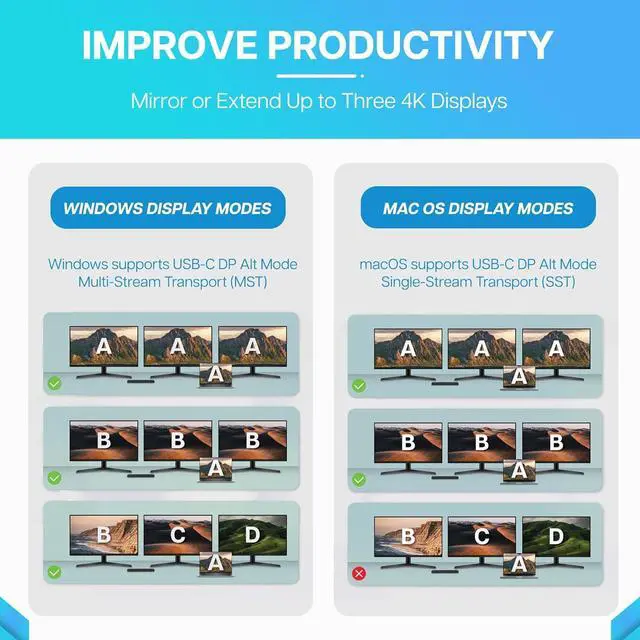 SST (Single Stream Transport) can only handle transmission to one downstream display through a single downstream port. However, a second screen can mirror other monitors. macOS only supports DisplayPort SST mode.