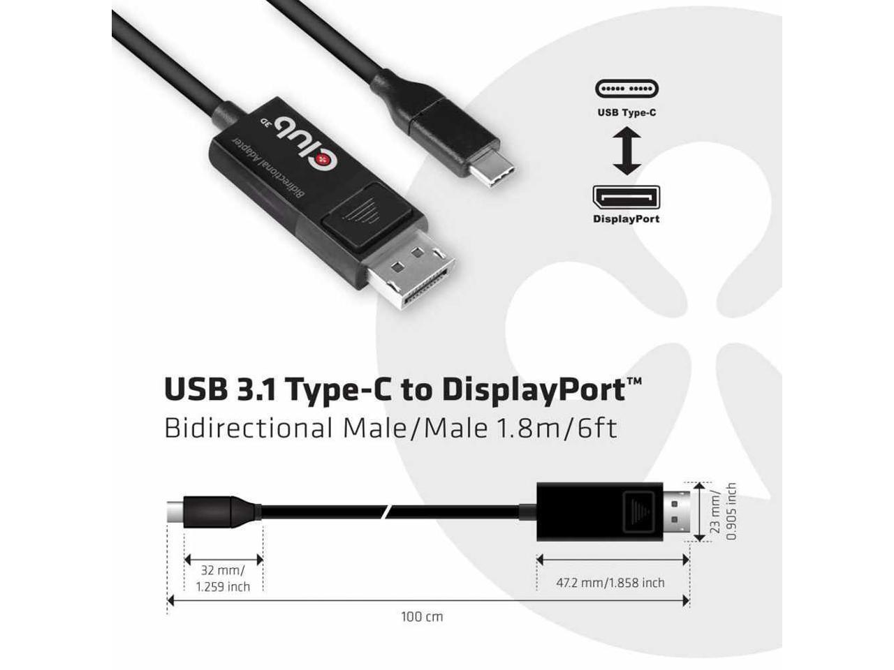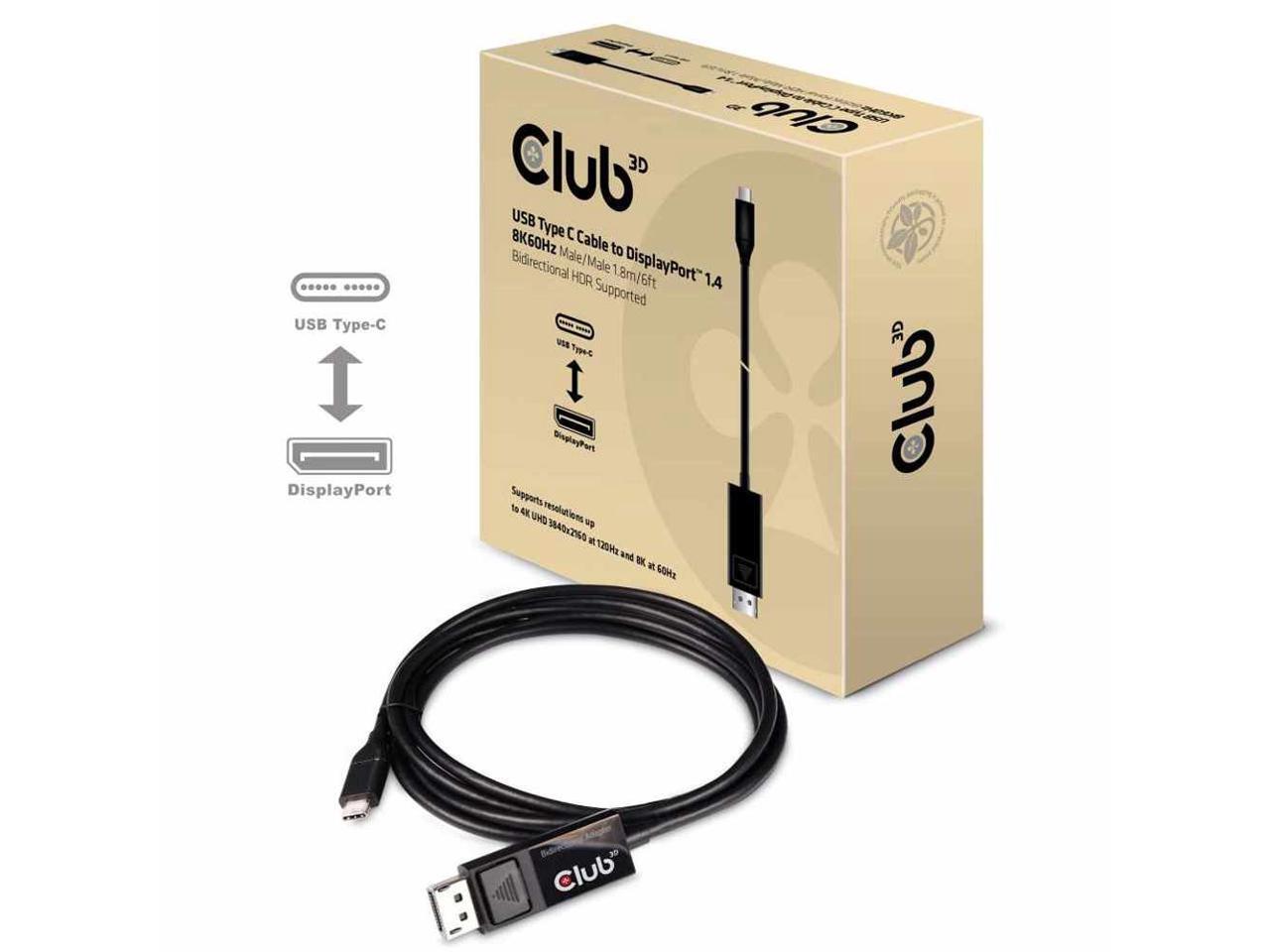 Club 3D Usb Type C Cable To Dp 1.4 8K60hz M/M 1.8M/5.9Ft