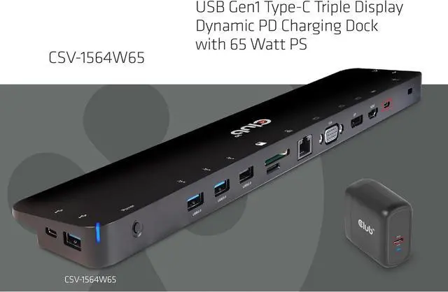 A USB Gen1 Type-C data port; a USB Gen1 Type-C port supports PD charging with max 100 W (20 V/5 A) 65 W charger included (for laptops with power consumption up to 65 W)