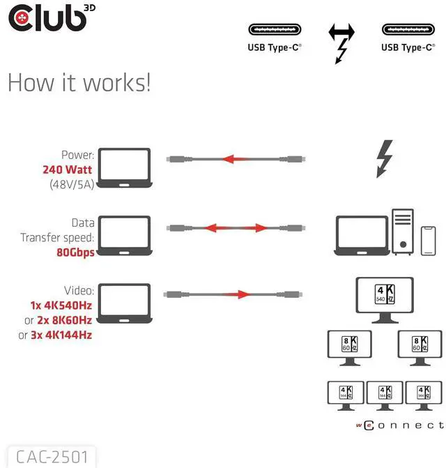 High performance: 1 m Thunderbolt 5 cable supports 80Gbps, 8K video and 240W EPR performance; USB Type-C to Type-C connector offer universal compatibility with Thunderbolt 3 & 4, USB80Gbps and other USB Type-C devices
