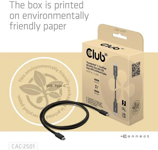 Specifications: 1m; Black; Thunderbolt 5 (80/120Gbps); USB 80Gbps and lower versions; DisplayPort 2.1 with DSC; 8K240Hz or Dual 4K144Hz; PCIe 64Gbps; 240W PD; Twisted Pair cable outer diameter: 4.8mm
