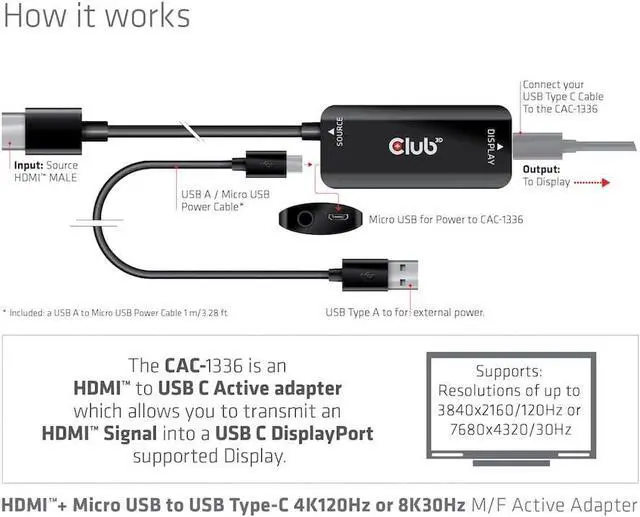 PLUG-AND-PLAY: With no drivers or software required, this HDMI to USB type C converter offers a true plug-and-play experience. It is USB powered, making it the perfect solution for professionals on the go Adapter is separatly powered thru a Micro USB Female port 7.5Watt (5V/1.5A) NOTE: this adapter does not power monitors