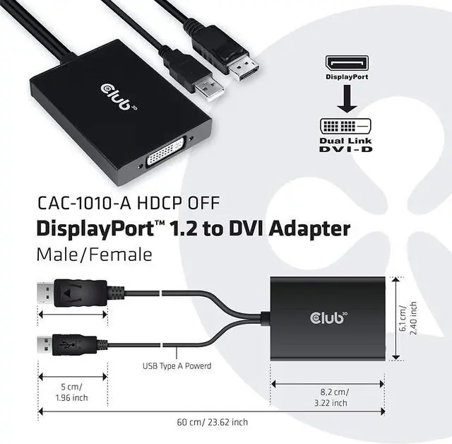 Displayport to DVI dual-link DVI-D active adapter for your Apple cinema monitor, this adapter does not support HDCP