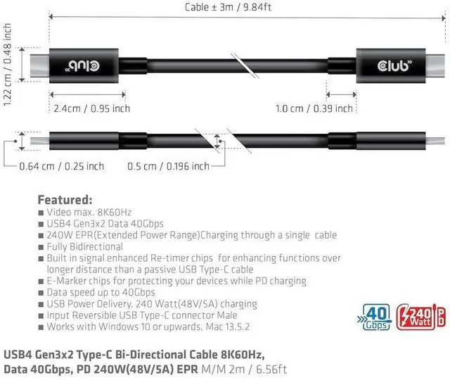 UNIVERSAL COMPATIBILITY: Works flawlessly with Windows, Apple OS X, and Chrome OS devices, making it a versatile choice for all. The bi-directional type c cable features male connectors on both ends, making it compatible with various devices, while the integrated E-marker IC enhances the cable's performance and reliability