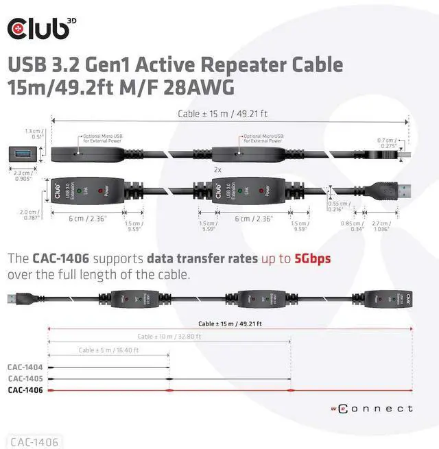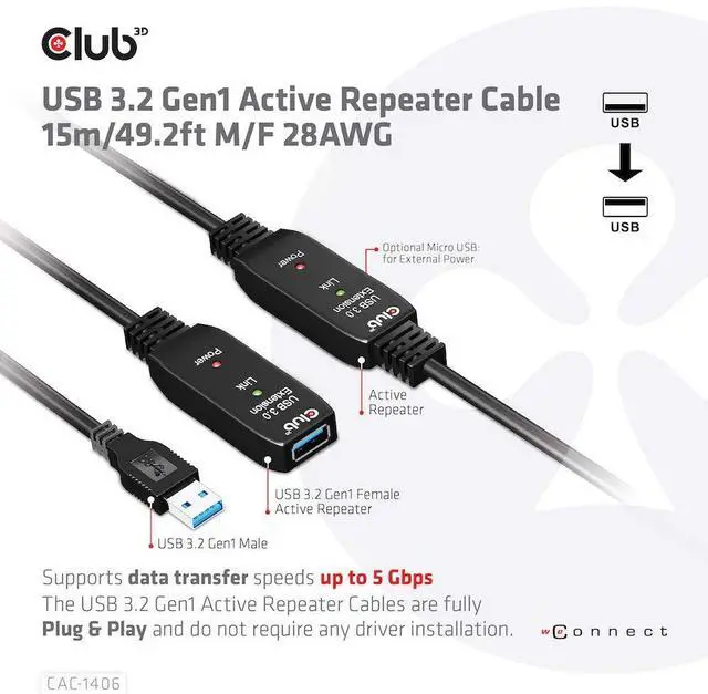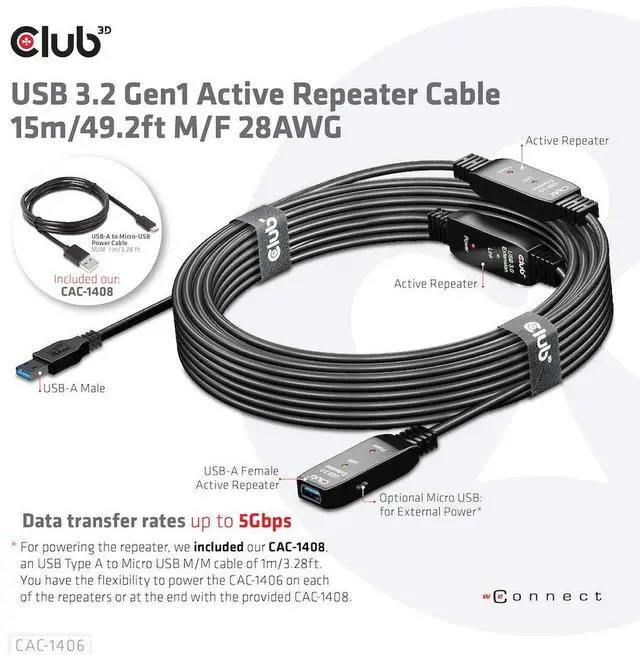 Power Repater: For powering the repeater, we included a USB Type A to Micro USB M/M cable of 1m/3.28ft. You have the flexibility to power the CAC-1406 with a USB Type-A cable extension on the repeater