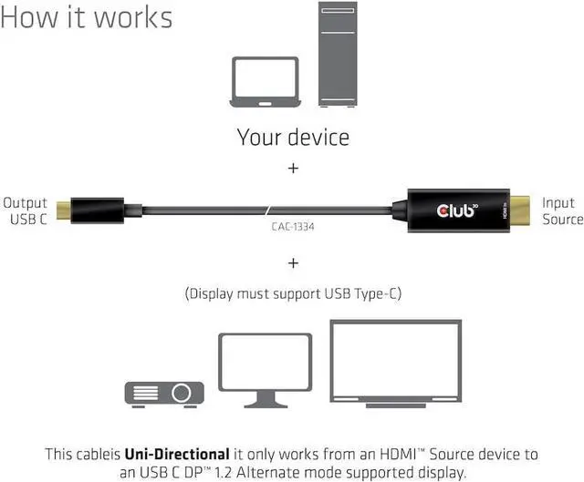 USB C: Supports four lanes with 1.62Gbps (RBR), 2.7Gbps (HBR) or 5.4Gbps (HBR2) data rate per lane Supports resolutions up to 4Kx2K@60Hz HDMI: Supports Status and Control Data Channel (SCDC) Meets ROHS, FCC and CE EMI requirements