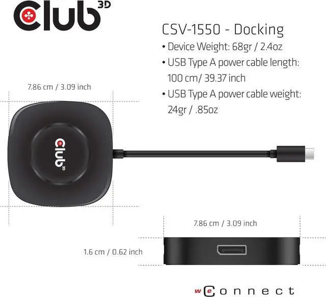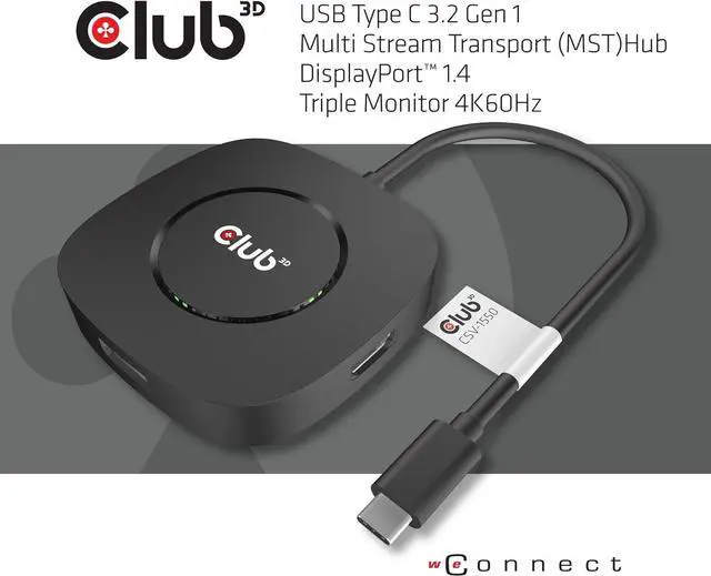 PLUG AND PLAY: This USB Type C to DisplayPort hub does not need external power, the device comes with a green LED light and a reset button to perform the reset for all 3 ports, Club 3D provides 2-year warranty and free technical support.