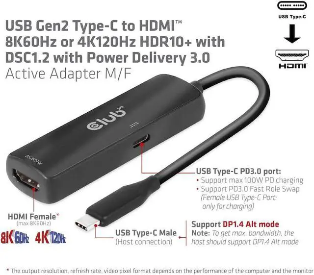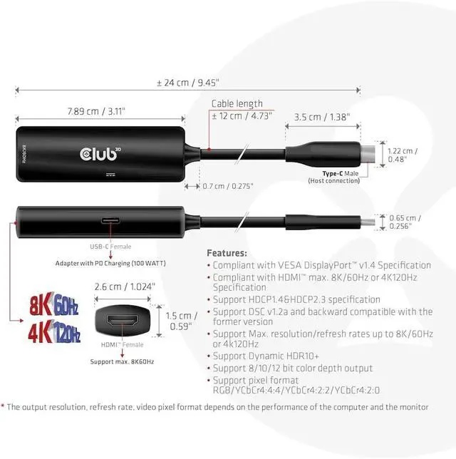 Compliant with VESA DisplayPort v1.4 specification; compatible with HDMI max. 8K/60Hz or 4K120Hz specification