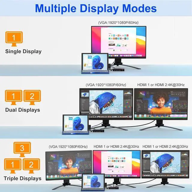 Triple Display & 4K Output for Enhanced ProductivityMaximize your multitasking with crystal-clear, multi-screen viewing. This Surface Pro docking station supports dual 4K@30Hz HDMI outputs and a 1080P VGA port, allowing you to extend or mirror your display across up to three monitors simultaneously. Ideal for professionals using Microsoft Surface Laptop Studio, it delivers an exceptional visual experience for work, design, or entertainment.