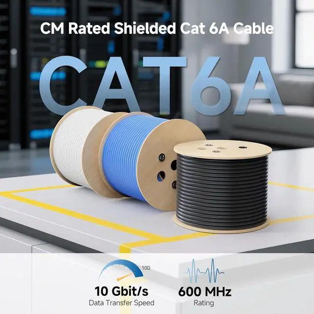 UL Listed for Safety and Compliance: UL listed (E485863) Cat 6a Ethernet cable bulk meets or exceeds TIA/EIA 568-C.2 and complies with UL 444 specifications for communications cables. Compatible with shielded keystone jacks, patch panels, and modular plugs, this shielded Cat 6a bulk ethernet cable ensures professional-grade performance for residential or commercial installations.