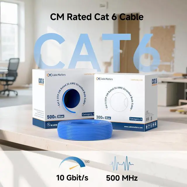 Premium Cat 6 Ethernet Cable 300ft: Our High Performance UL Listed (E178558) Cat6, 24 AWG, CM Rated, Stranded Ethernet Bulk Cable is the perfect solution for creating custom length network patch cables. Whether for a home setup or a large-scale network, this Cat6 cable 300ft spool is ideal for any application