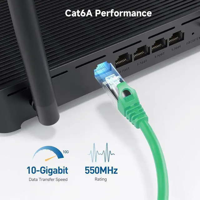 Cat6a performance at a Cat 5e price but with higher bandwidth; SSTP/SFTP (Screened Foiled Twisted Pair) shielding can prevent electromagnetic interference (EMI) and reduce crosstalk noise over the Cat 6a Ethernet cable