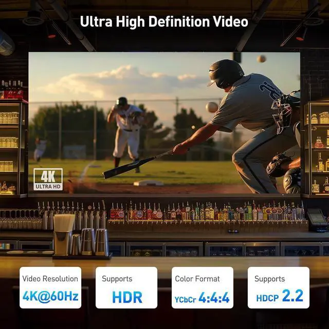 The 4K HDMI over Cat6 supports video resolutions up to 4K@60 Hz; Supports High Dynamic range (HDR) for vibrant video; The HDMI to Cat6 converter also supports HDMI High Definition audio for a full range of audio types, including SACD, DVD-Audio, DTS-HD Master Audio, and Dolby TrueHD