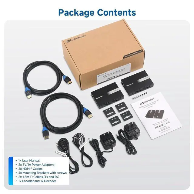 Remote HDMI Control: Effortlessly control HDMI video sources from remote locations with the included IR pass-through cables. This feature allows for convenient management of playback and settings without needing to be physically near the equipment, enhancing the flexibility and usability of your installation.