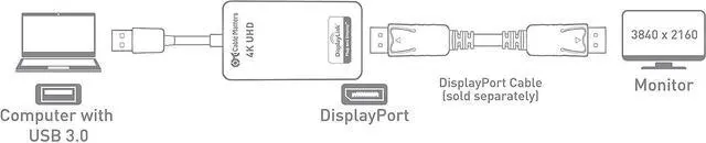 USB VIDEO GRAPHICS ADAPTER uses an available USB 3.0 port on a computer to connect a monitor with DisplayPort input; Add an additional display when the other video ports on your computer are occupied; A DisplayPort cable (sold separately) is required