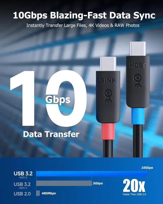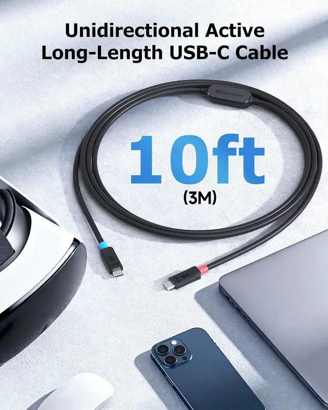 10G rated full feature USB C cable supports a data transfer rate up to 10Gbps at a 3 meter (9.8 feet) length, offering the extra length needed to create a clutter-free desktop; 10Gbps is 2x the data transfer rate of USB 3.0 for compatibility with the fastest USB-C external hard drives