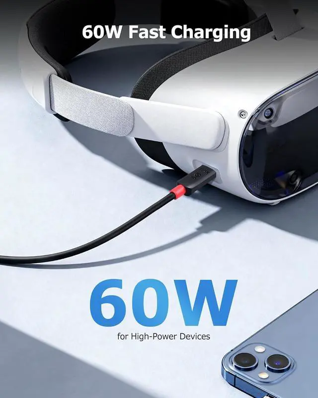 Extra long USB C video cable connects a USB C monitor, VR headset such as Oculus Quest (Oculus Link update required), USB C hard drive, USB C docking station, or USB C charger to a computer; Offers a single USB-C cable solution with video, data and charging up to 60W