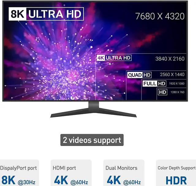 DisplayPort port supports up to 8K video (7,860 x 4,320)
