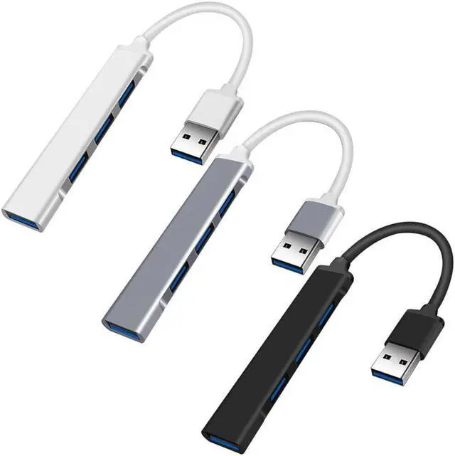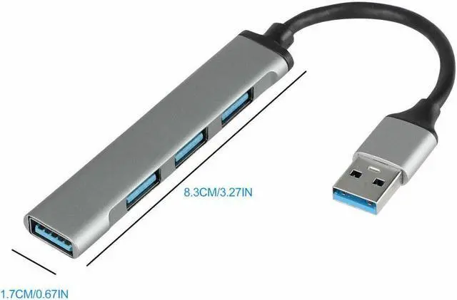 USB 3.0 4 Port Hub Splitter Slim & Sleek Aluminum for PC Mac Laptop Desktop Gray