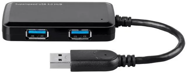 Expand your device connectivity with this compact 4-Port USB 3.0 Hub, designed for portability and convenience. Ideal for travel and mobile workstations, this lightweight hub fits easily into laptop bags and sleeves while offering four SuperSpeed USB 3.0 ports with data transfer rates up to 5Gbps. It's perfect for connecting external hard drives, flash drives, keyboards, mice, smartphones, and more to your laptop or desktop. The space-optimized port layout allows for full use of all ports, even with larger USB connectors. Powered directly from your computer, this plug-and-play hub requires no drivers or external powerjust connect and start using it instantly.