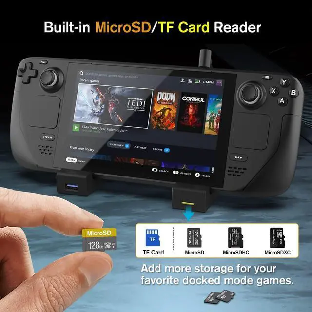 EXTRA MICRO-SD/TF CARD READER: Create an additional game library! Expand your storage capacity with the built in microSD/TF card reader. Keep your favorite "docked mode" games stored on the dock, freeing up storage space on your device