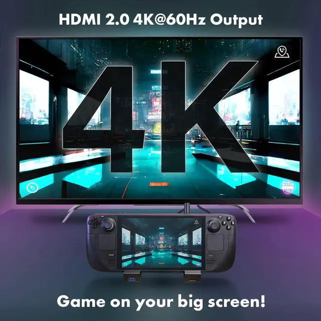 7-in-1 Docking Station: Enjoy seamless connectivity with a Micro-SD card reader, HDMI 4K@60Hz output, Gigabit Ethernet input, 2 USB-A 3.1 ports, 1 USB 3.0 port, and USB-C charging. Not compatible with Steam Deck Armor Case or protective cases >2mm.