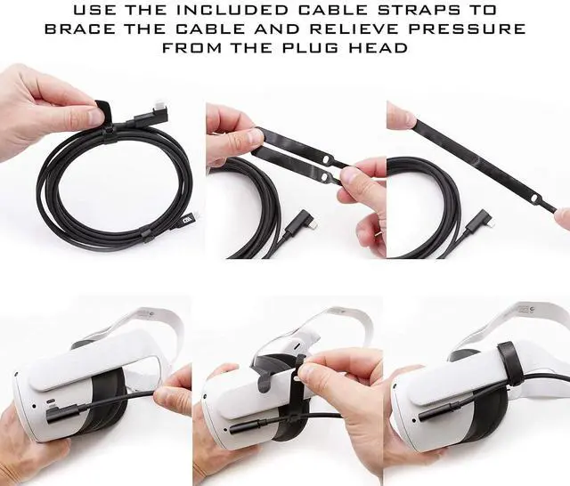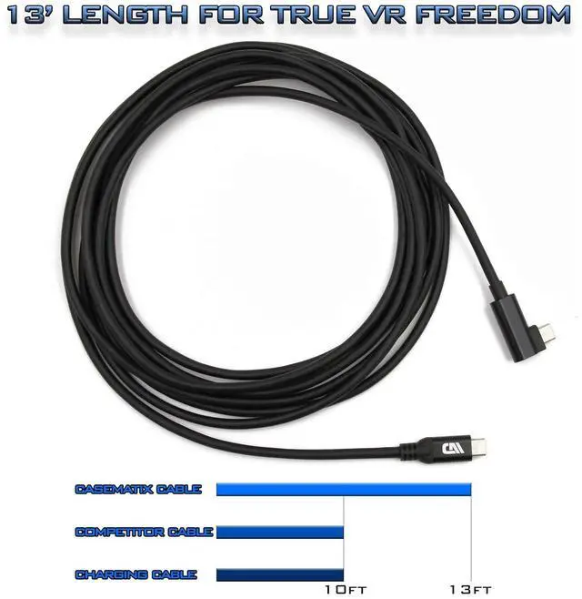 Comfort Angled Plug - Game in comfort with this cable's conveniently-angled plug head, which routes the link cable 90 degrees and down so it hangs naturally and reduces strain on the headset's port, instead of out and away from the headset.