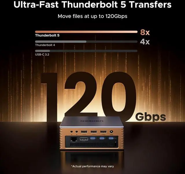 120Gbps Thunderbolt 5 Speed&M.2 High-Speed Storage: Intel-certified Thunderbolt 5 provides up to 120Gbps bandwidth. Built-in NVMe PCIe Gen4x4 M.2 slot supports 22302280 SSDs up to 8TB for fast external storage.