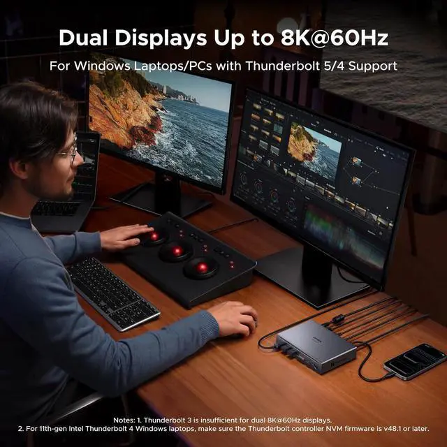 8K Multi-Display for Demanding Workflows : Supports single 8K@60Hz, dual 6K@60Hz, or triple 4K@120Hz via DP2.1 and 2×TBT5. Whether you're editing video or debugging code, expand your workspace for seamless multitasking.