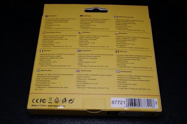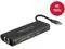 This docking station by Delock can be connected to a computer with a USB-C Alt-Mode or Thunderbolt 3 port and provides a variety of interfaces. A display can be operated at the HDMI output. Two built-in USB Type-A ports allow the use of peripherals, and connections for gigabit network, as well as an SD card reader, complete the features. With a USB-C power supply, laptops such as the Macbook or Chromebook can be charged during operation.