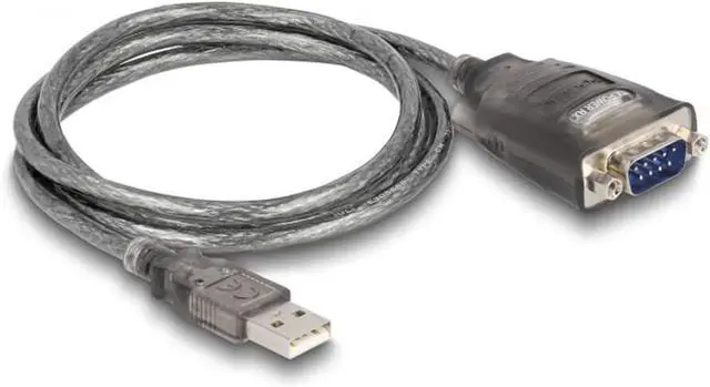 "With this adapter by Delock a serial device can be connected via a USB Type-A port. Specification Connectors: 1 x USB 2.0 Type-A male > 1 x Serial RS-232 DB9 male with nuts Chipset: FTDI FT231XS Data transfer rate up to 460.8 Kbps FIFO: 512 bytes - RX FIFO: 512 bytes - TX data bits: 7, 8 stop bits: 1, 2 bitParity bit: straight, odd, none, marked, empty signals: TxD, RxD, RTS, CTS, DTR, DSR, DCD, RI, GND 3 x LED display ±15 kV ESD protection for all serial signals. Cable length without connectors: approx. 1 m system requirements: Linux kernel 5.8.0 or higher. Windows 8.1/8.1-64/10/10-64/11. Windows Server 2016/Windows Server 2019 PC or notebook with a free USB Type-A port. Package contents: USB 2.0 to 1 x serial adapter driver CD user manual packaging retail box. " "