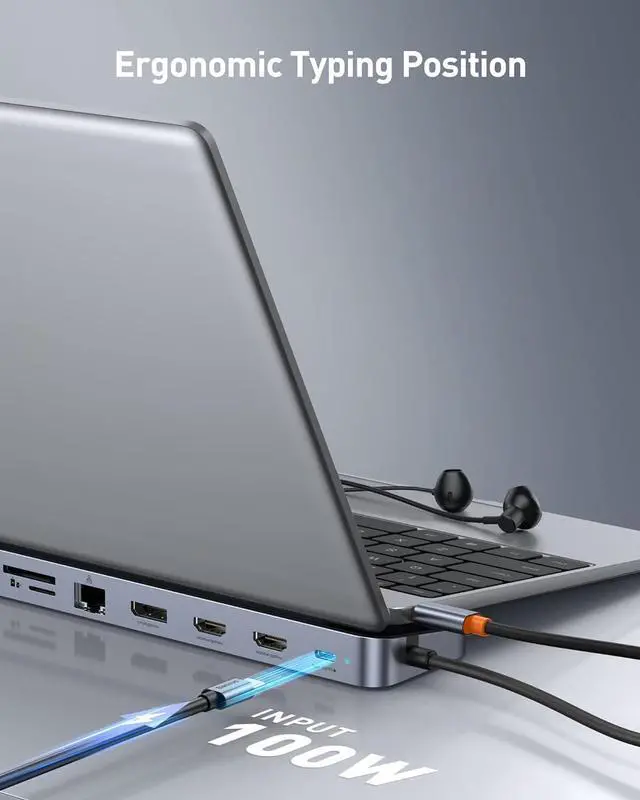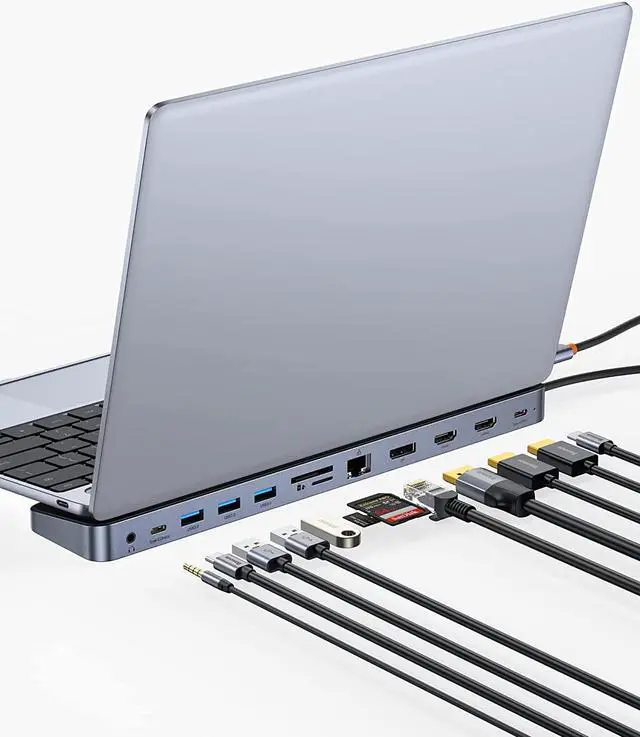 12-in-1 All-in-One Expansion: Equipped with 3 USB-A 3.0 ports, 1 USB-C 3.0 port, Gigabit Ethernet, 4K HDMI, 4K DP, TF/SD card readers, audio jack,100W PD charging port everything you need for seamless connectivity in one compact docking station 3 monitors