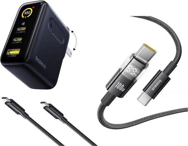 Bundle Content: 1*Baseus Picogo 100W USB C Charger with Display, 1*100W USB C Cable, 1*Baseus 100W USB C Cable with LED Display